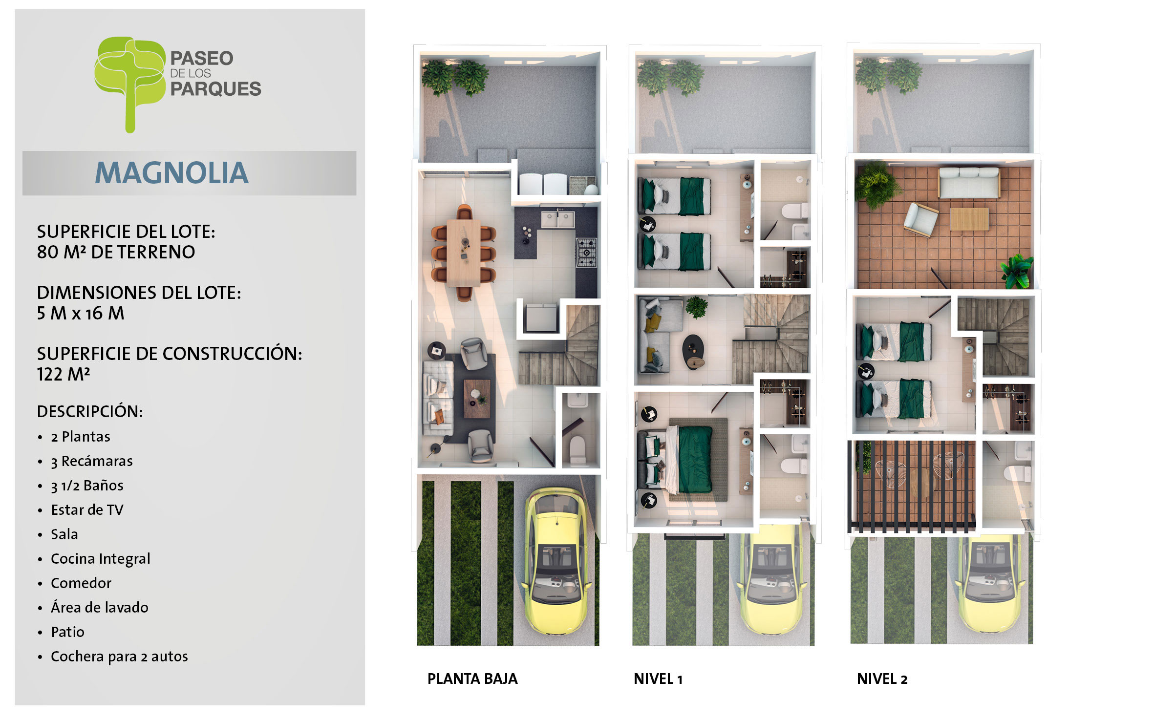 - 3 Recámaras