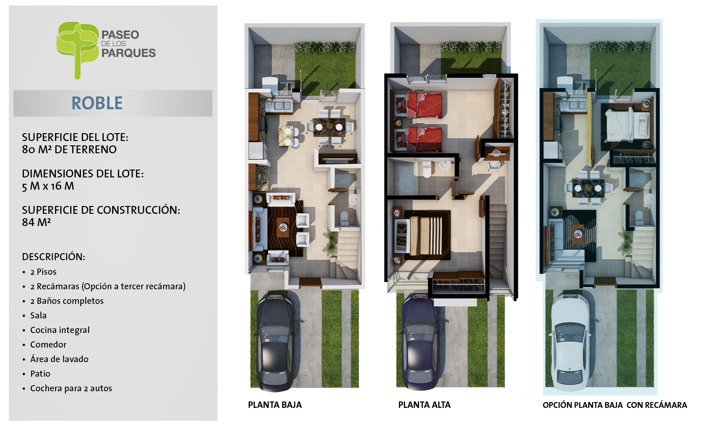 - 2 Recámaras (Opción a tercer recámara)