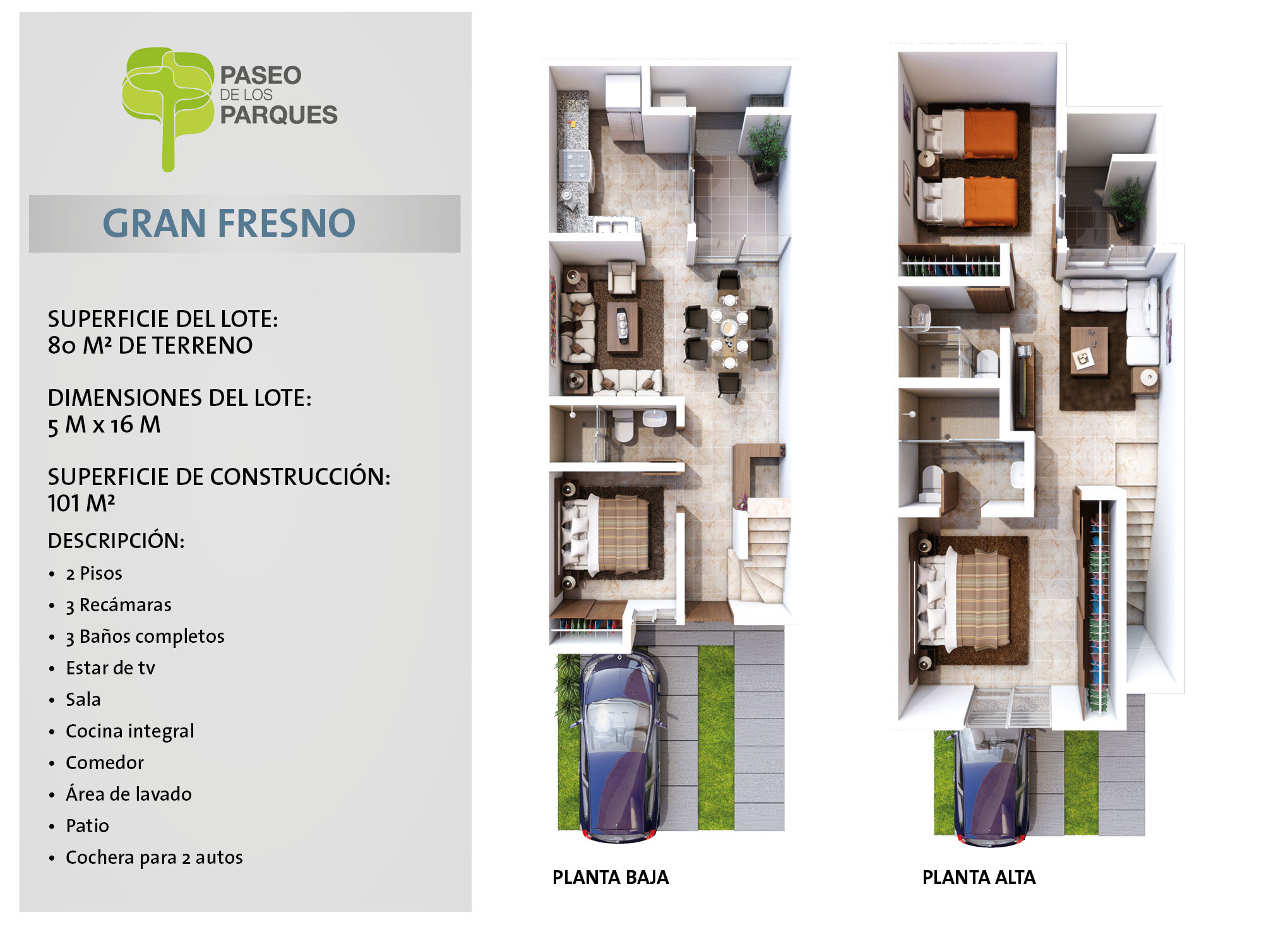 - 3 Recámaras